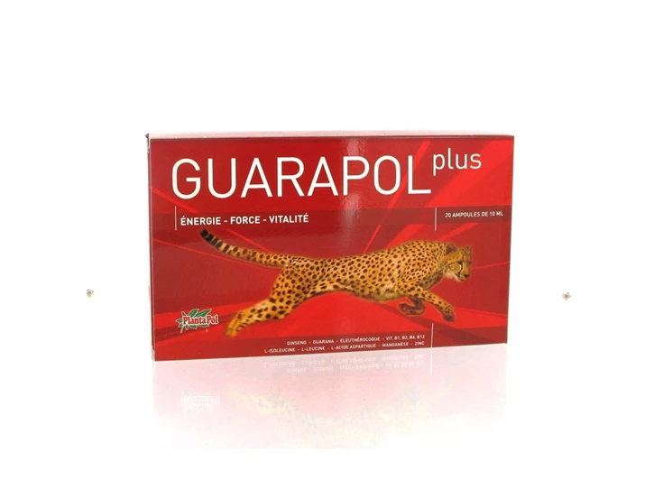 Plantapol Guarapol Plus is door zijn sterke en unieke samenstelling op basis van plantenextracten vitamines mineralen en aminozuren het ideaal voedingssupplement voor mensen die heel snel extra energie nodig hebben. Guarapol Plus bevat de kracht van 3 uitzonder- lijke natuurproducten Guarana Ginseng en Eleutherococcus sinds eeuwen gekend en gebruikt voor hun energiegevende eigenschappen. Guarapol Plus is het ideaal product bij zwakte vermoeidheid en stress. Voor sporters bij zware arbeid voor de spieren voor studenten en voor alle mensen die hun fysisch en intellectueel rendement willen verhogen.GUARAPOL PLUS is zonder twijfel een unieke krachtige snelwerkende energiebron.