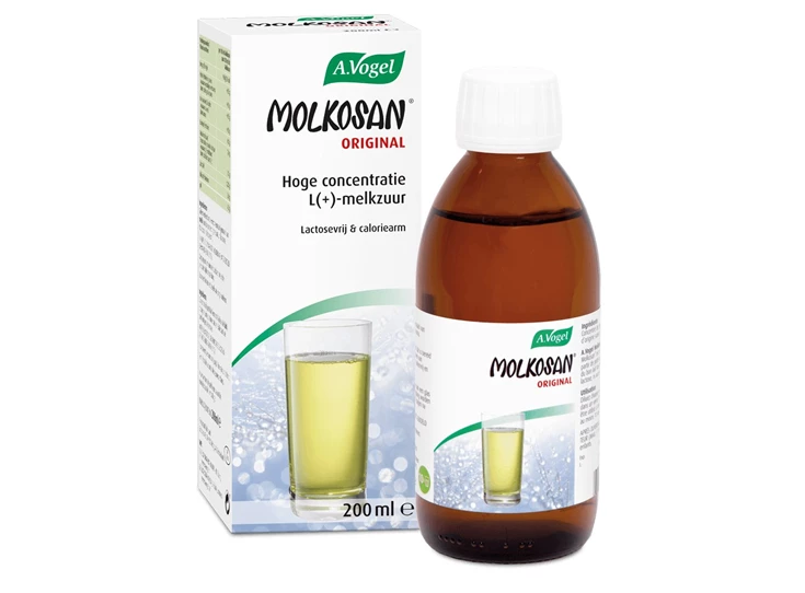 Molkosan van A.Vogel is een 100% natuurlijk product dat is bereid uit gezuiverde en geconcentreerde melkwei van verse Zwitserse alpenmelk. Deze caloriearme drank bevat een hoog gehalte rechtsdraaiend (L+) melkzuur, is lactosevrij en bevat geen suiker. Verbeterde formule met milde friszure smaak en geur.