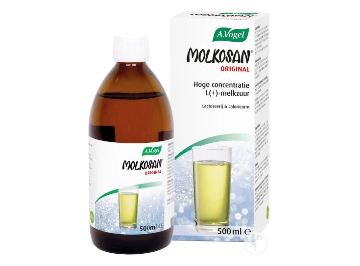 Molkosan van A.Vogel is een 100% natuurlijk product dat is bereid uit gezuiverde en geconcentreerde melkwei van verse Zwitserse alpenmelk. Deze caloriearme drank bevat een hoog gehalte rechtsdraaiend (L+) melkzuur, is lactosevrij en bevat geen suiker. Verbeterde formule met milde friszure smaak en geur.