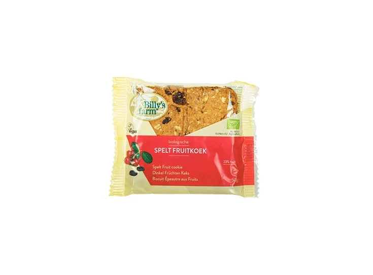 Een heerlijk koekje van speltbloem, aangevuld met rozijnen en cranberries.