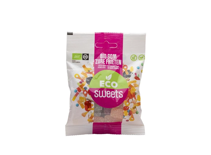 Ingr.: Glucosestroop*, suiker*, geleermiddel (carrageen), voedingszuur (citroenzuur), melkzuur, zuurgraad corrector (calciumcarbonaat), natuurlijke fruitaroma’s (citroen*, limoen, sinas* & aardbei), vruchten- en plantenextracten (zwarte bessen*, wortel*, appel*, saffloer, zeewier).