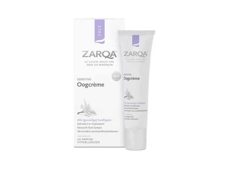 ZARQA Oogcrème kalmeert en hydrateert direct de gevoelige huid rond de ogen. De zachte formule met vitaminen en hyaluronzuur werkt verzorgend en beschermend. De crème verzacht rimpeltjes en fijne lijntjes. Het verstevigt de huid en vermindert tekenen van vermoeidheid. Dankzij de milde samenstelling ook geschikt voor lensdragers.