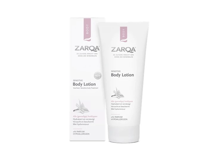 ZARQA Body Lotion hydrateert en verstevigt de huid. Het heeft een regulerende werking op het vochtgehalte van de huid en voorkomt uitdroging. De body lotion ondersteunt het herstel van de natuurlijke huidbarriëre. De huid wordt zacht en soepel. Het product is zeer geschikt voor de uiterst gevoelige en soms geprikkelde huid. De body lotion beschermt tegen schadelijke invloeden van buitenaf, zoals UV straling en luchtvervuiling. Geschikt voor het hele gezin.