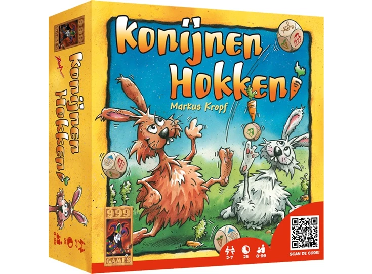 Konijnen Hokken past uitstekend in onze serie dobbelspellen en is ideaal voor op vakantie. Er kunnen maar liefst 7 spelers meedoen!