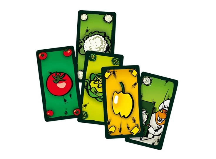 Speel groentekaarten en benoem ze op de juiste manier. Kakkerlakken maken het je moeilijk. Maar in dit chaotische spel heet een tomaat ook regelmatig paprika, bloemkool of...toch tomaat. Elke aarzeling is fataal. Wie zijn concentratie het langst kan behouden is in het voordeel, want versproken is versproken!