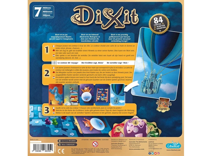 Houd je adem in! De afbeeldingen worden onthuld. Ze hebben een ding gemeen: een raadselachtige zin. Maar let op: slechts een van deze vijf afbeeldingen is de juiste. Aan jou om met doorzichtige intuïtie de juiste afbeelding te vinden zonder in de val van je tegenspelers te trappen; Dixit: een verrassend, gezellig en grappig spel waar je met vrienden en/of familie van kan genieten.