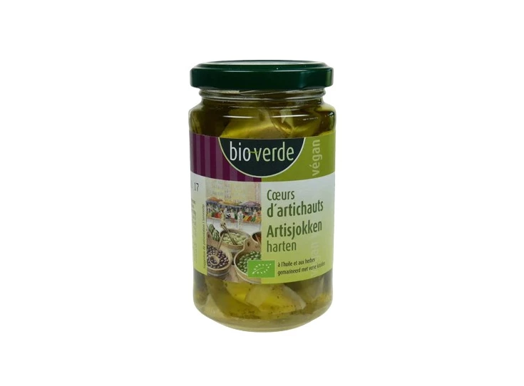 Artisjokjarten* (65%), zonnebloemolie*, olijfolie*, zeezout, kruiden* (1%-peterselie*,basilicum*,rozemarijn*,tijm*, oregano*)
