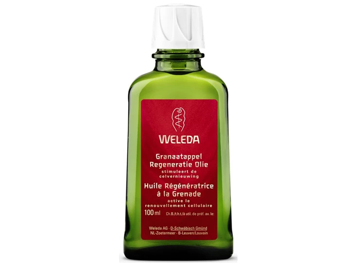 Granaatappel Regeneratie Olie, met biologisch geteelde granaatappelen uit Turkije, helpt vroegtijdige huidveroudering tegengaan en verzorgt intensief. Plantaardige oliën van o.a. macadamia en jojoba reguleren de vochthuishouding. De olie van granaatappelpitjes zit boordevol antioxidanten die de huid beschermen en de celvernieuwing stimuleren. Daarnaast bevordert zij de elasticiteit en spankracht van de huid. Natuurlijke etherische oliën van o.a. neroli, sinaasappel en sandelhout geven de olie een subtiele geur die de zintuigen prikkelt.