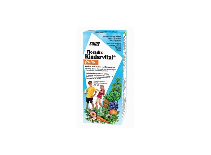 Kindervital fruity is ideaal voor kinderen vanaf 3 jaar. Het bevat geen alcohol, conserveringsmiddelen,kleurstoffen of kunstmatige smaakstoffen, is gluten – en lactosevrij en is ook geschikt voor vegetariërs.