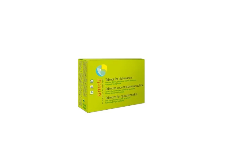 De belangrijkste werkzame bestanddelen in de SONETT tabletten voor de vaatwasser zijn soda, silicaten en suikertenside. Die zorgen ervoor dat etensresten opzwellen en dat vetten geëmulgeerd en opgelost worden. Blekende zuurstof (natriumpercarbonaat) verwijdert thee- en koffieresten uit glazen en kopjes. Citraat en polyasparaginezuur (eiwitstof die in slakken en schelpen voorkomt, maar petrochemisch gesynthetiseerd is) binden kalkresten in het afwaswater effectief.