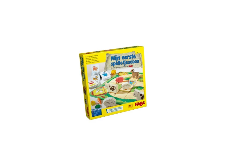 Een spelletjes verzameling om te leren spelen met 10 spellen en 34 houten dieren.